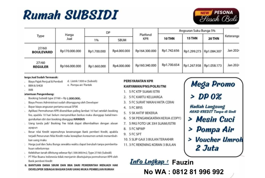 Perumahan Bersubsidi >> Perumahan Bersubsidi >> New Pesona Sasak Bali